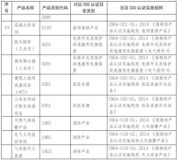 注:未標注序號的產品在CCC產品目錄中屬于1種產品下的部分產品。