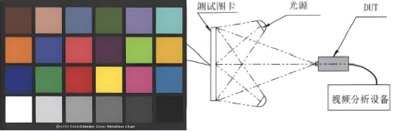 通過視頻分析設(shè)備,分析DUT拍攝各色塊的色度坐標;