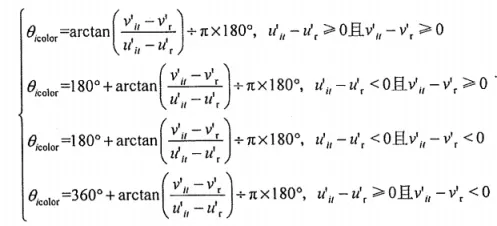 色調(diào)角:表示顏色的色調(diào)方向,通過u'、v'坐標與白點的相對位置計算。