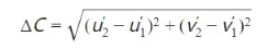 色距ΔC表示兩個顏色在色度圖中的直線距離,用于量化色度差異。在CIE 1976 UCS中,色距的計算直接基于u'和v'坐標的歐幾里得距離。公式為