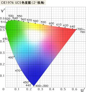 CIE1976色度空間全稱CIE 1976(L*,u*,v*) (也作CIELUV)色彩空間,這個色度空間是為了改進之前的CIE 1931 XYZ色度圖,使其在視覺上更均勻,也就是說顏色之間的差異更符合人眼的感知。L*表示物體亮度,u*和v*是色度,也稱為色品坐標,用來表示顏色,由L*、u*和v*組成的三維坐標,形成了顏色的立體空間。對于一般的圖像,u*和v*的取值范圍為-100到+100,亮度為0到100。U’和 V’值可以按下列公式由三刺激值X、Y、Z算出。