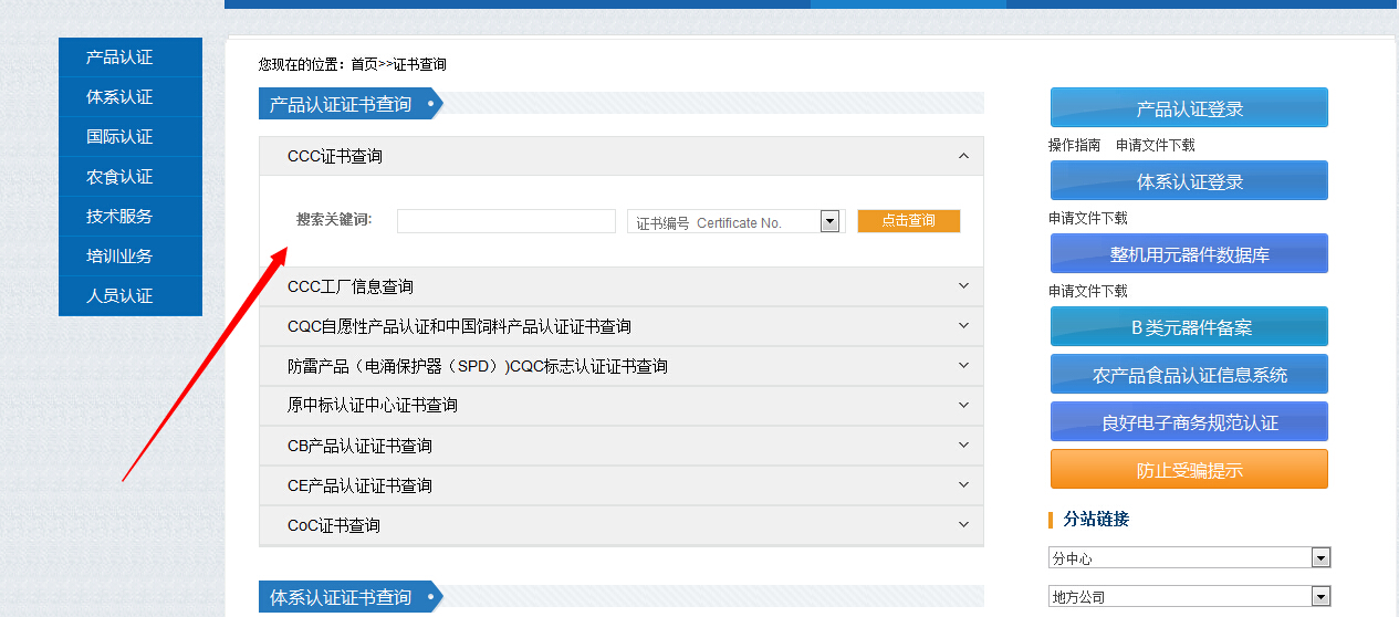 第一步:打開(kāi)CCC認(rèn)證官網(wǎng)(即:中國(guó)國(guó)家認(rèn)證認(rèn)可監(jiān)督管理委員會(huì)),網(wǎng)址:http://www.cqc.com.cn/www/chinese/