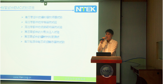 此次高峰論壇會NTEK汽車事業部工程經理陳奕旭就“新能源汽車高壓零部件測試分析”發表演講,糾正了企業在生產時所犯的錯誤并給出建議。同與會人員分享了我實驗室在電動汽車高壓零部件電磁兼容試驗的經驗,并對該類零部件在測試過程中出現的超標問題進行了分類和解析。