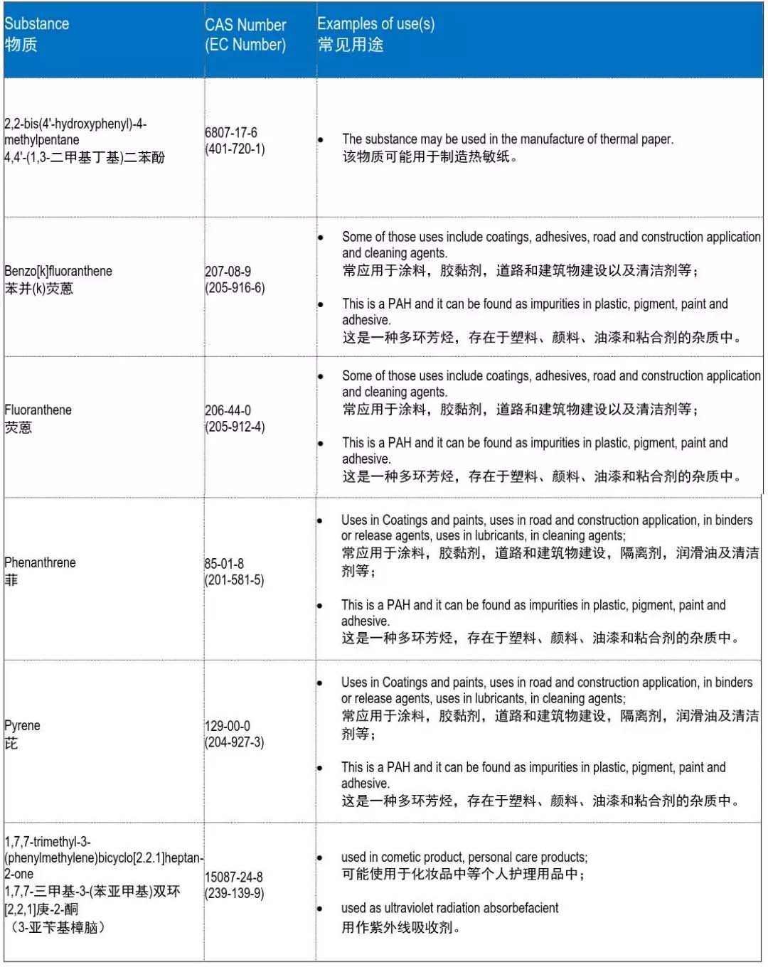 SVHC物質(zhì)清單新增6個物質(zhì)清單如下: