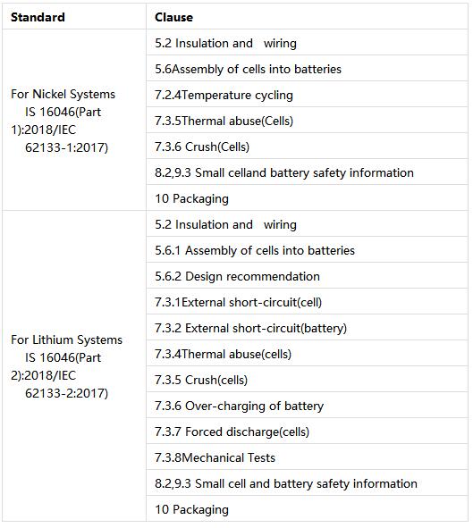 2019年3月11日,印度BIS發布了電池電芯標準更新的指導意見 IS 16046 (Part 1):2018/IEC 62133-1:2017 和 IS 16046 (Part 2):2018/ IEC 62133-2:2017,取代了 IS 16046:2015/ IEC 62133:2012。